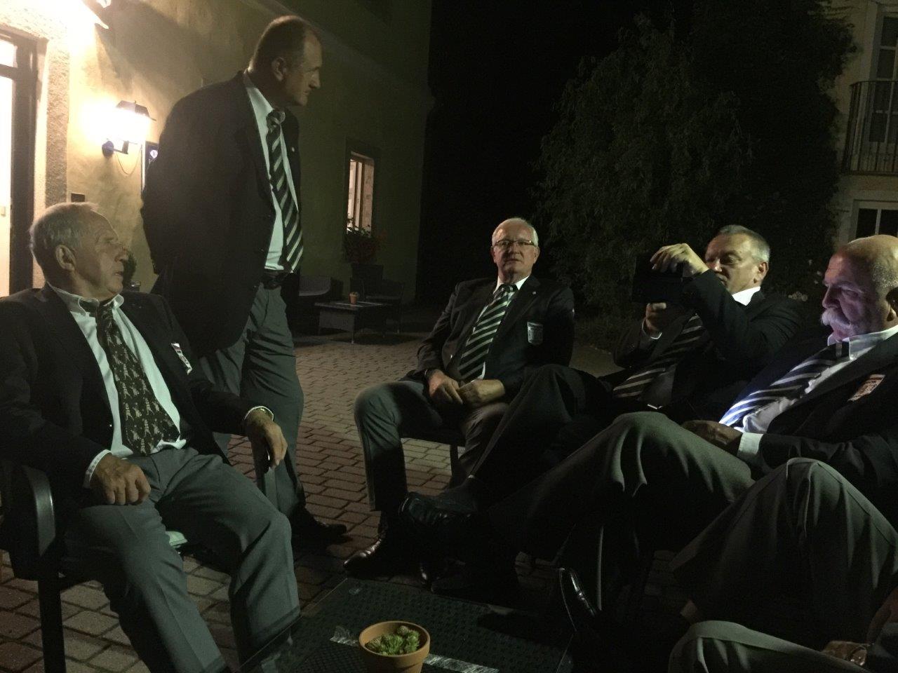 Po společném gala večeru v zámecké vinárně, kde se Němci projevili jako výborní hostitelé, se večer protáhl dlouho přes půlnoc a mimo jiné i zásluhou hoteliéra Zdeňka Balka jsme se propili k nejlepším vínům místní vinotéky. Nic ale nepoznamenalo naše výsledky v singlech, i když po první polovině se náš náskok snížil na minimum. I náš matador Luboš Hakl podlehl výbornému soupeři.